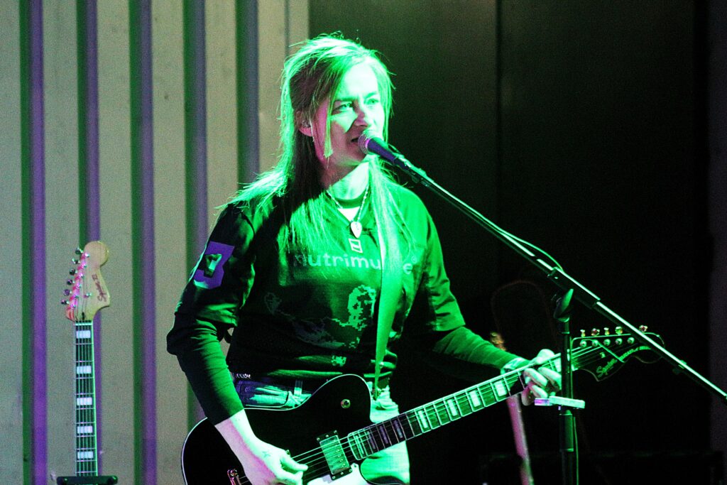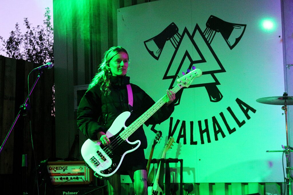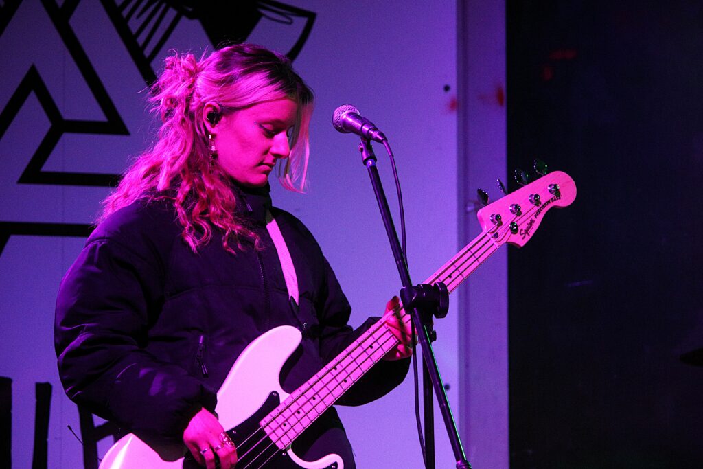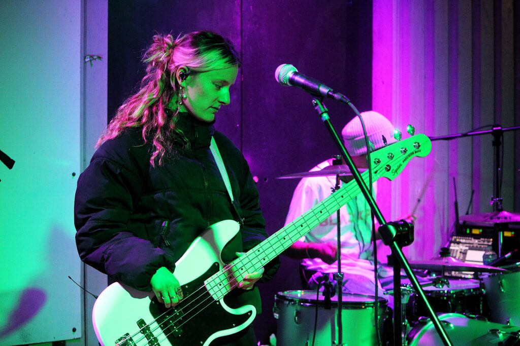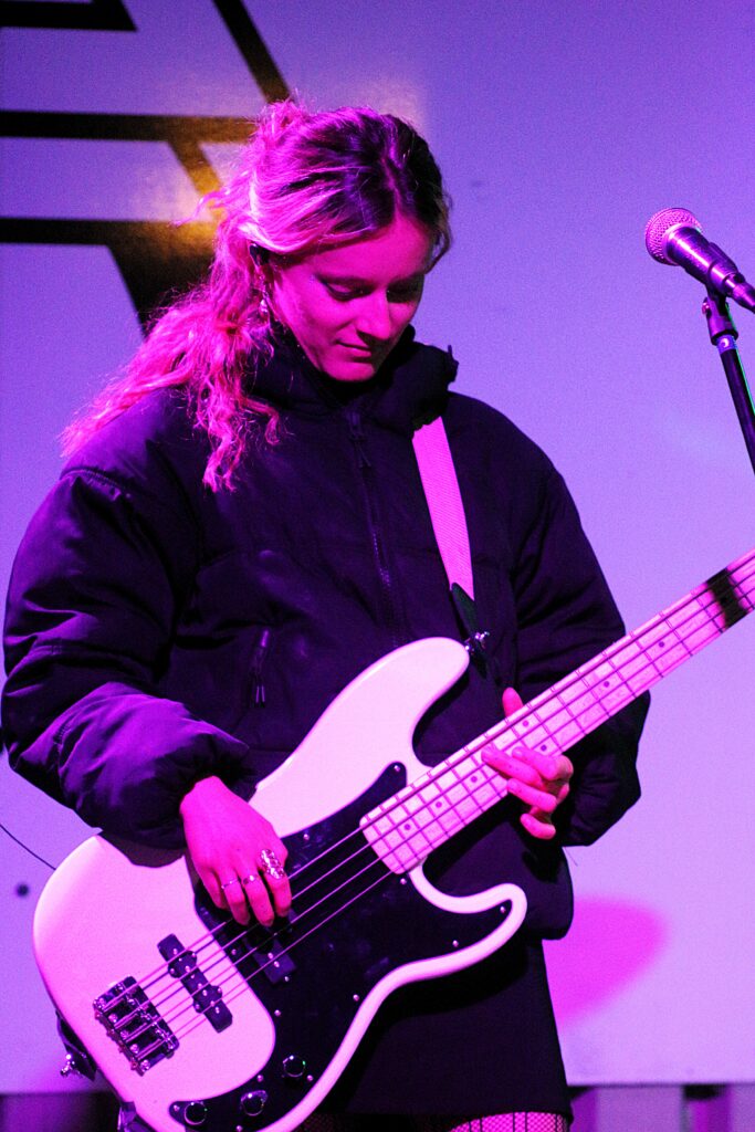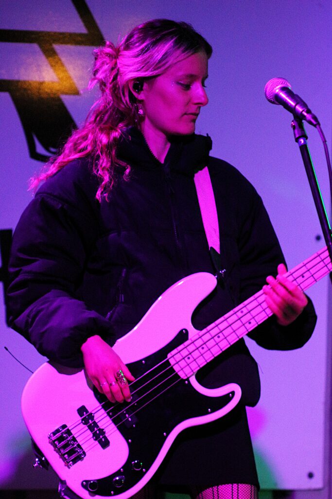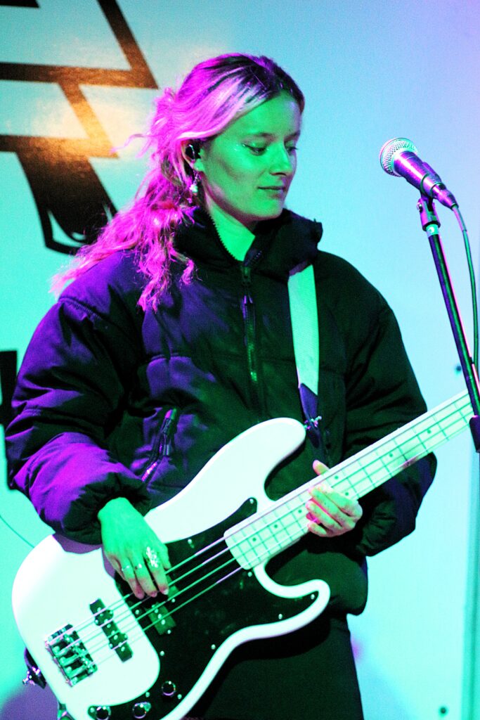 Si Ella Gunn continue de jouer régulièrement seule sur scène, comme le samedi 20 septembre 2025 au festival FULL, à Louvigny, près de Caen (Calvados), l’autrice-compositrice-interprète manchoise a tenu à s’entourer d’autres musiciennes pour davantage valoriser ses compositions pop-rock lorsque la scène le permet. Sa recrue la plus récente est la bassiste Julie Querteux. Cette Caennaise de 24 ans, originaire d’Alençon (Orne), a déjà un beau parcours de pratique musicale.